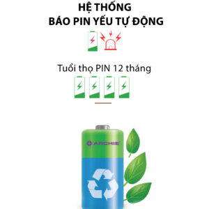 • Sử dụng 4 viên pin tiểu 1.5V, tuổi thọ pin khoảng 10.000 lần mở cửa