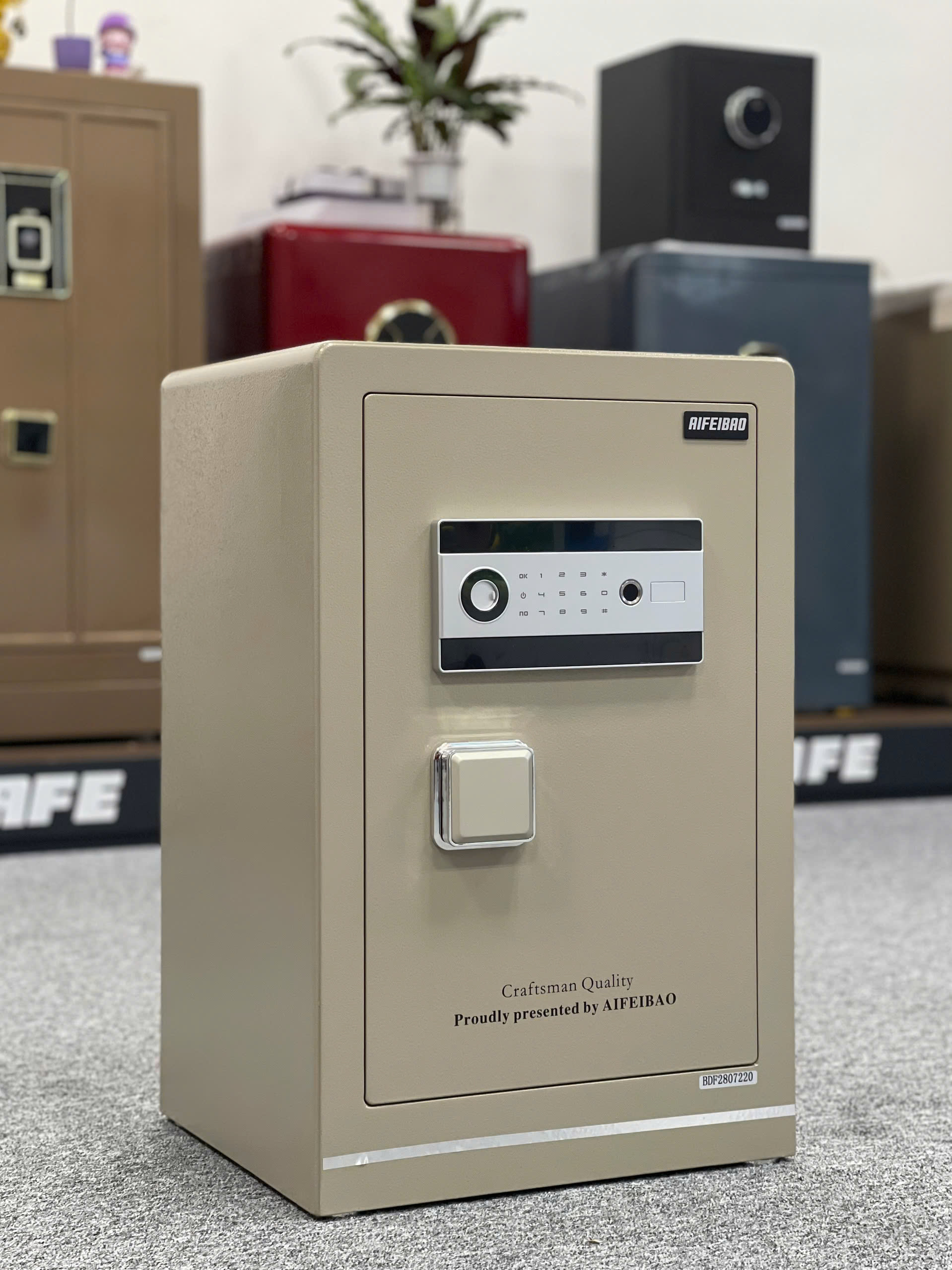 Két sắt thông minh Aifeibao HK-60-FL. Với kích thước cao 600mm, Rộng 390 mm, Sâu 340 mm rất phù hợp để trong phòng ngủ. Để dưới bàn trang điểm, làm tab đầu giường, để trong phòng sách hay văn phòng công ty. Mẫu này phù hợp sử dụng cho hộ gia đình, văn phòng, lễ tân hoặc kế toán để tài liệu…v.v.