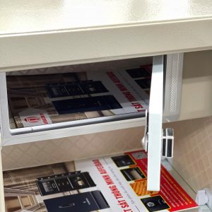 Kích thước nội thất là được đo tổng thể chiều cao nội thất bên trong bao gồm ngăn kéo bên trên. Các đợt chia ngăn và không tính phần ngăn hầm bên dưới. Hai ngăn chia đợt để vừa túi Clear đựng giấy A4 hay sổ đỏ, có thể tháo rời.