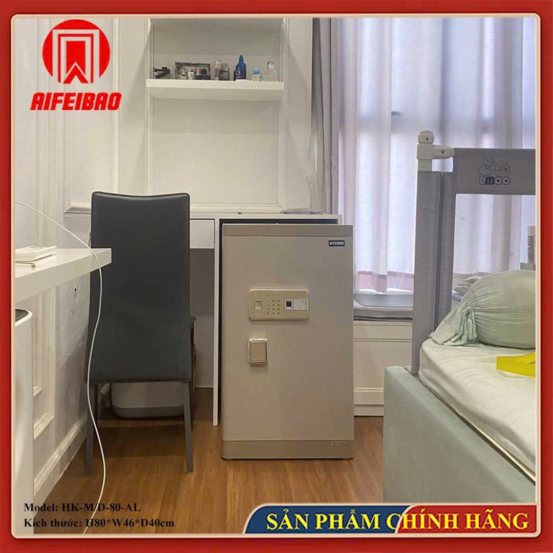 Két sắt thông minh Aifeibao HK-M/D-80-AL. Với kích thước cao 800mm,Rộng 460 mm,Sâu 400 mm rất phù hợp để trong phòng ngủ. Để dưới gầm bàn, để cạnh tap đầu giường, để trong phòng sách hay văn phòng công ty cũng rất phù hợp. Mẫu này rất phù hợp sử dụng cho hộ gia đình, văn phòng, lễ tân hoặc kế toán để tài liệu…v.v.