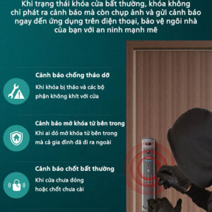 - Cảnh báo chống tháo dỡ: Khi khóa bị tháo và các bộ phận không khít với cửa, khoá sẽ ngay lập tức phát ra âm thanh cảnh báo