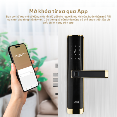 Chỉ với một chạm trên điện thoại, bạn có thể mở khóa nhanh chóng, tiện lợi cho những tình huống cần mở cửa từ xa cho người thân, bạn bè hay khách đến thăm. Khóa thông minh Hexa L100 còn hỗ trợ chia sẻ quyền truy cập vô cùng linh hoạt. Bạn có thể tạo mã số dùng một lần để gửi cho người khác khi cần, hoặc thêm mã PIN cá nhân cho từng thành viên trong gia đình. Ngoài ra, các thông số của khóa đều có thể được thiết lập và điều chỉnh ngay trên app.