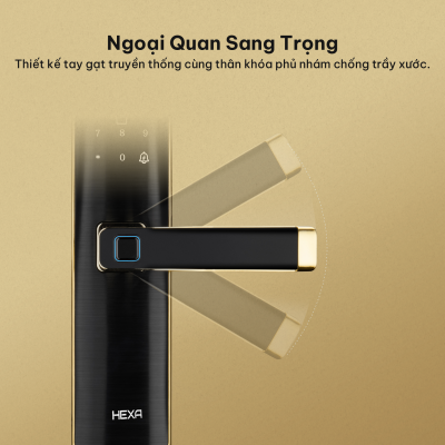 Meta: Khóa cửa thông minh Hexa L100 thiết kế tay gạt truyền thống, dễ dàng mở khóa từ xa qua app, vân tay bán dẫn, chống nước IP66, lõi cấp C chống cắt an toàn vượt trội.