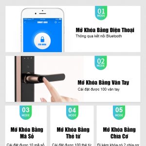 | Chức năng mở khóa | Vân tay/ Mã số/ Thẻ từ/ Chìa cơ/ Bluetooth (App Kaadas) |