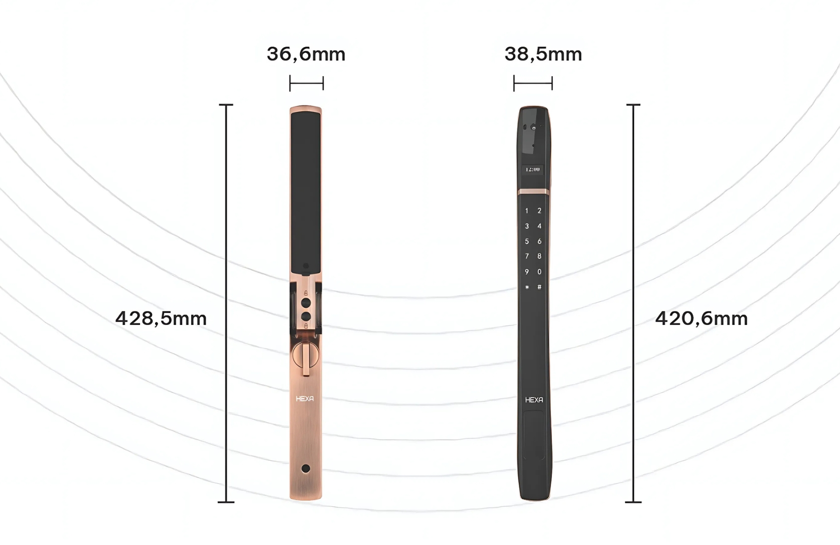 Không chỉ mạnh mẽ về công nghệ, Hexa P300-Pro còn gây ấn tượng bởi ngoại hình nhỏ gọn nhưng tinh tế, phù hợp với nhiều phong cách kiến trúc từ hiện đại đến cổ điển. Thiết kế dạng kéo đẩy (push-pull) tiện dụng giúp thao tác mở cửa mượt mà, chỉ cần một tay là đủ – đặc biệt lý tưởng khi bạn đang xách đồ hoặc dắt trẻ nhỏ.